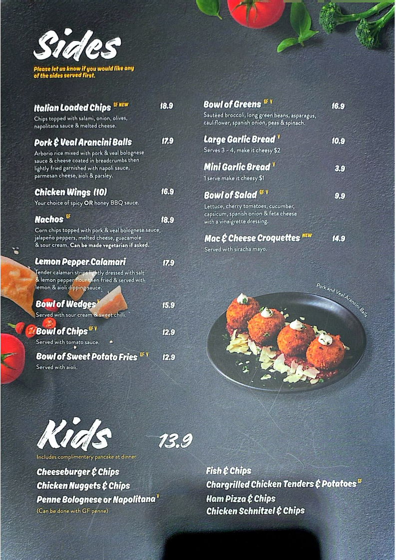Arborio rice mixed with pork and veal bolognese sauce & cheese coated in breadcrumbs then lightly fried garnished with napoli sauce, parmesan cheese, aioli and parsley.